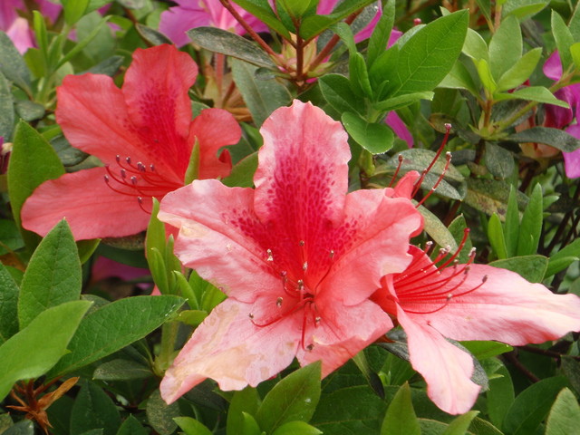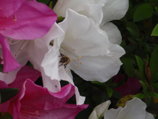 趁著空檔賞櫻去 沒想到這種紅色那麼的吸引人 春天就是這樣動人 杜鵑花也開了 連小蜜蜂都來湊熱鬧 當時拍照的時候還真怕被咬 不過小蜜蜂抗拒不了如此漂亮的花 根本沒時間理我 粉色和白色交錯 一叢叢的真的是美不勝收 拿本書坐在櫻花下看書 我過了個很美好的早上