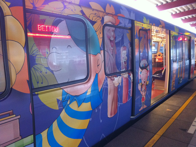我們搭著捷運開心出發