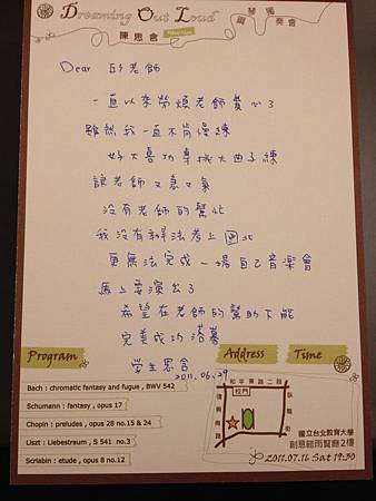 七月第一場學生鋼琴獨奏會即將在國立台北教育大學豋場